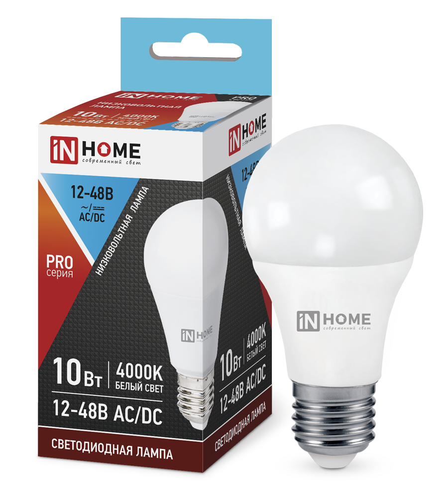 Лампа светодиодная низковольтная LED-MO-PRO 10Вт 12-48В Е27 4000К 900Лм IN HOME 4690612038032 в Чите